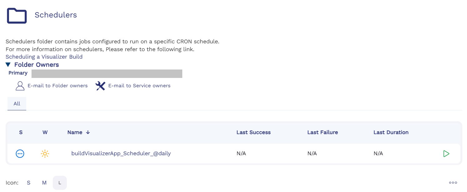 Jobs that are triggered by Cron expressions are stored in the Schedulers folder. Every Scheduler contains a cron string in the name to simplify searches.
