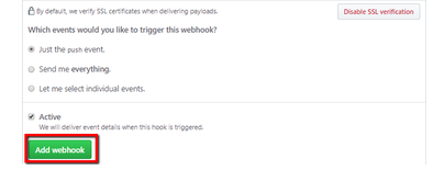 - Open your GitHub repository in a web browser, navigate to Settings → Webhooks, and then click Add webhook.