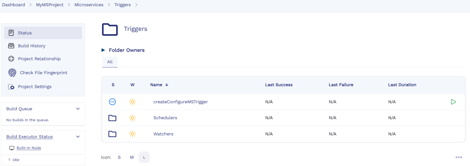 - In the Triggers folder, click the build icon for the createConfigureMSTrigger job.