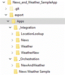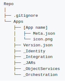 A Fabric app directory must contain unzipped packages of the app. To obtain a zipped package, export an app from the Fabric Console. When you extract the zip file, it creates an export folder for the app source. Make sure that you check-in the Fabric app folder to your repository.