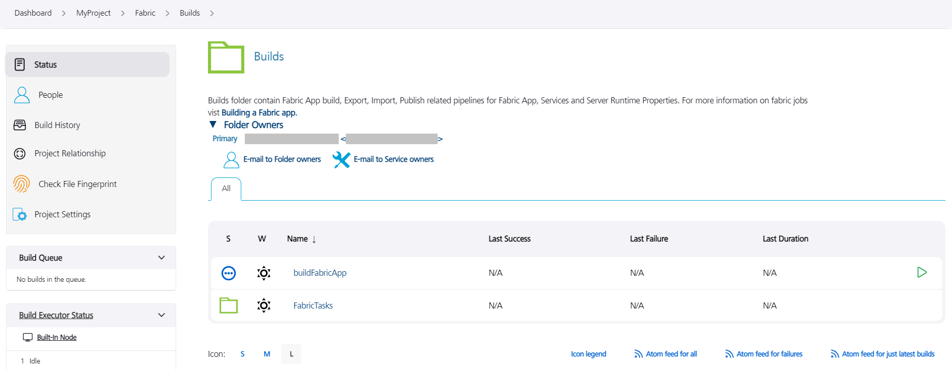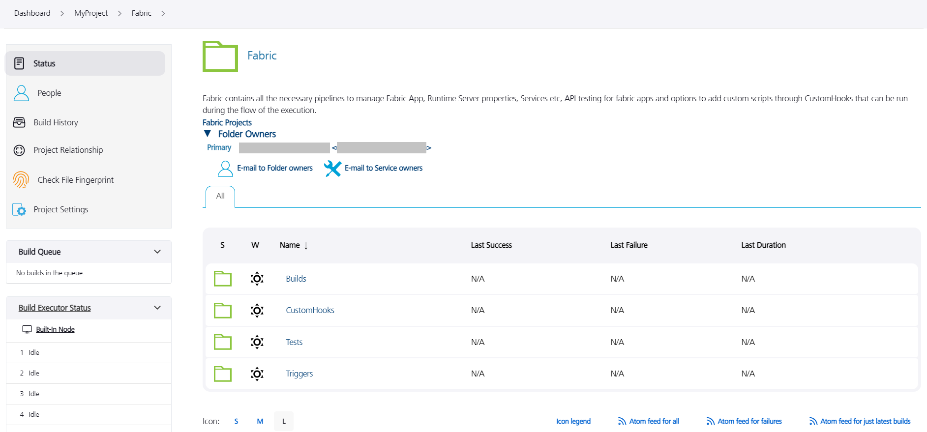 The Builds folder contains the buildFabricApp job, which orchestrates the build and publish logic of a Fabric app to the Quantum Fabric environment.