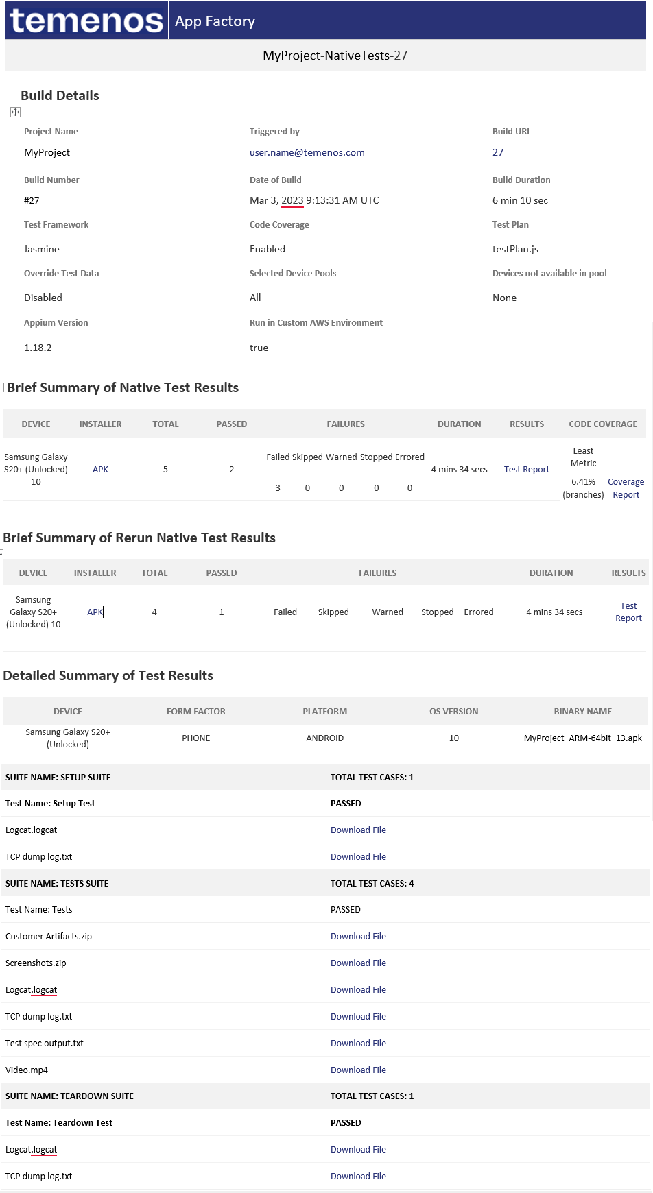 This section contains a brief summary and a detailed summary of the tests that are run on your native apps.