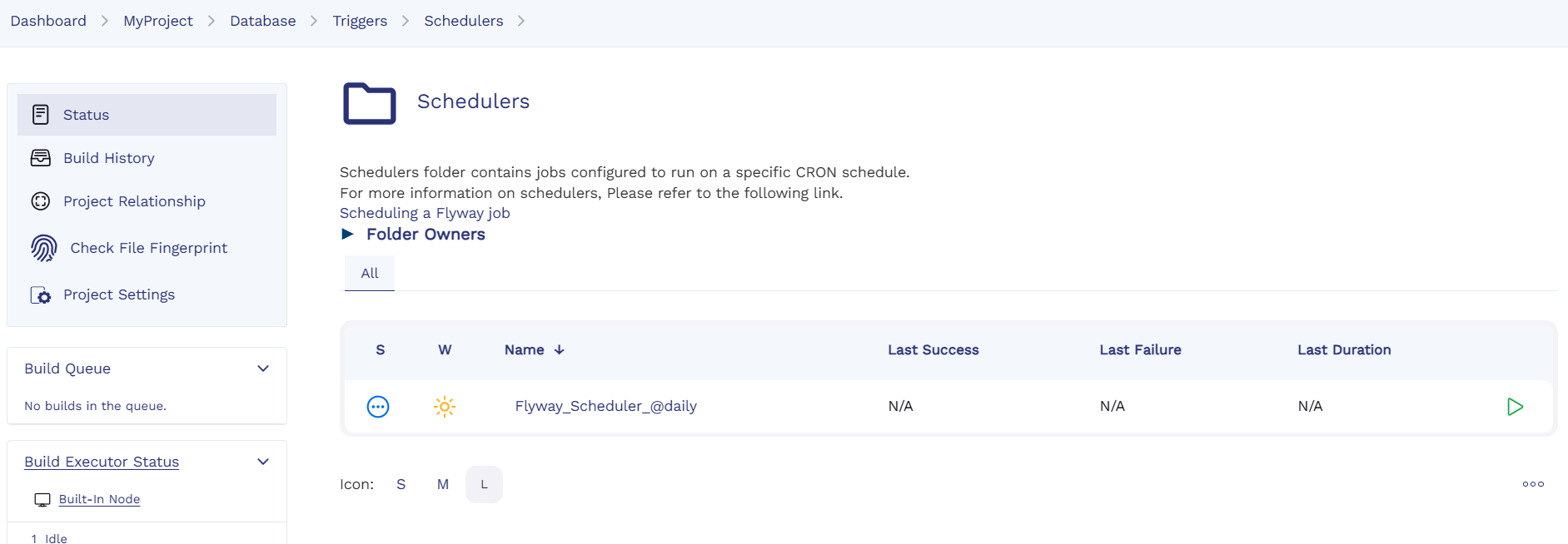 - In the Triggers folder, click the build icon for the createFlywayTrigger job.