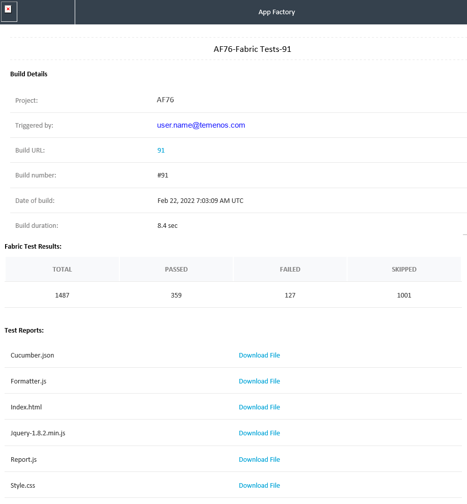 After a test run is complete, an email that contains the test results is sent to the addresses that are configured in the project settings.