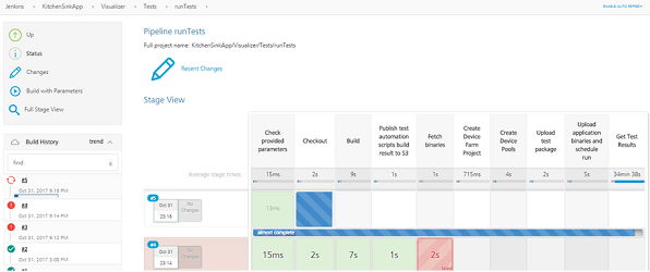 The builds that failed during the test can be tracked for the issues that caused the failure. For example, consider build #4 from the following screenshots of runTests job. To troubleshoot the issue, follow these steps.