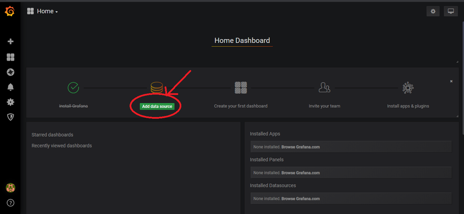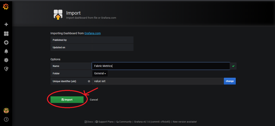 Once Grafana is accessible, the Fabric metrics dashboard must be configured. Perform the following steps to configure the fabric metrics dashboard in Grafana.
