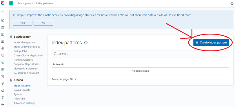 3. Click Create index pattern.
