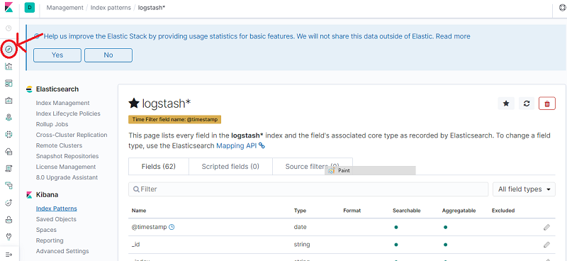 2. Under Kibana, click Index Patterns.