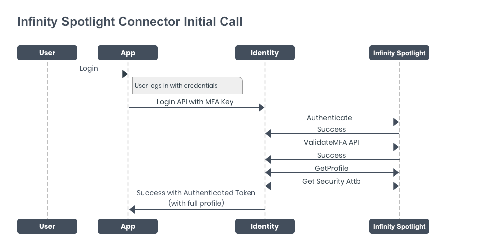 The Infinity application invokes the Login API along with the stored MFA key, and sends the details to the Identity service.
