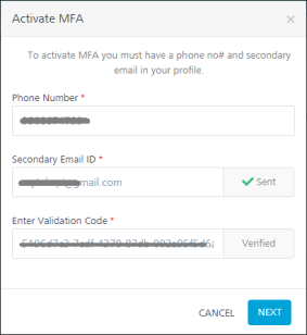 The Multi-Factor Authentication (MFA) feature helps you activate a user account for an added security authentication on Cloud. If you activate MFA for your account, and you use MFCLI, you must provide additional details such as a secret key along with other attributes.