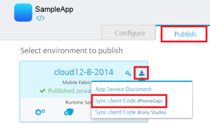 - Click Download, and then click Sync client Code (PhoneGap) shown below: