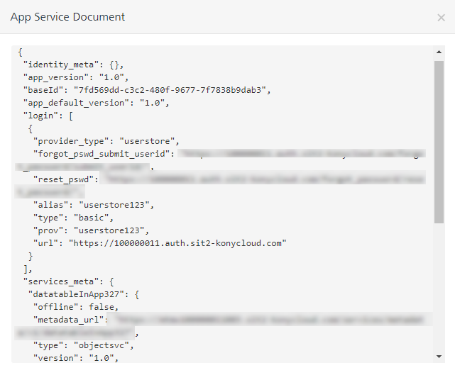 - Download Reconfiguration: You can download the JSON file that contains the cumulative reconfiguration data, if you have reconfigured and published an app using Configure and Publish. The data of all the reconfigured services are stored in the snapshot.
