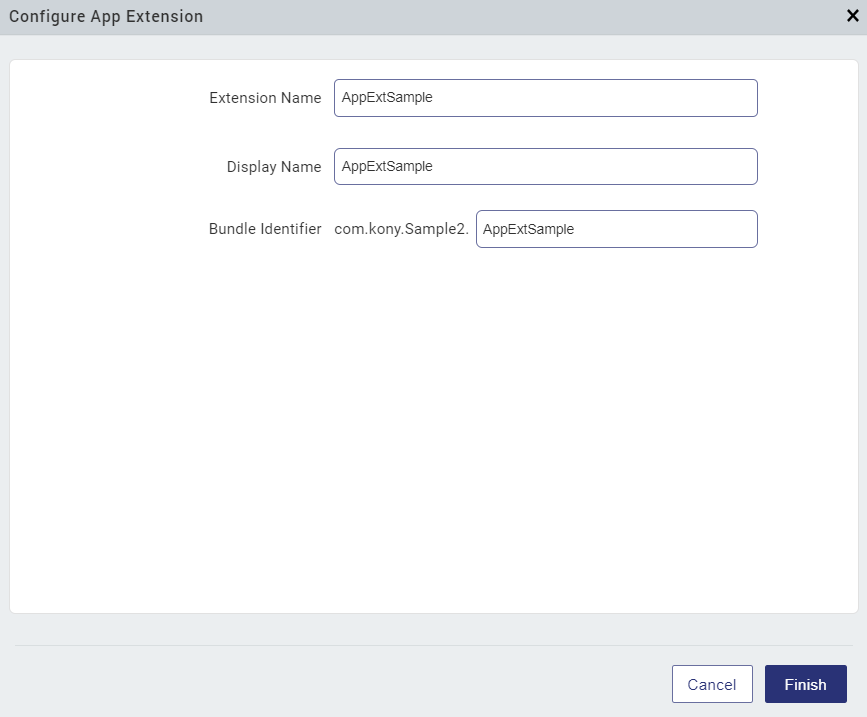 6. In the Configure App Extension dialog box, enter the Extension Name, Display Name, and Template details.