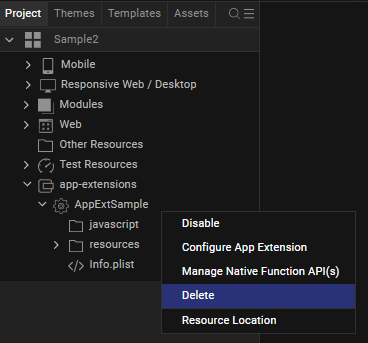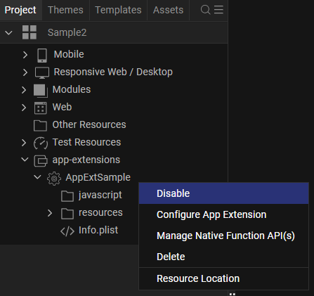 NOTE: Disabled app extensions are not compiled or added to the application when you perform a build.