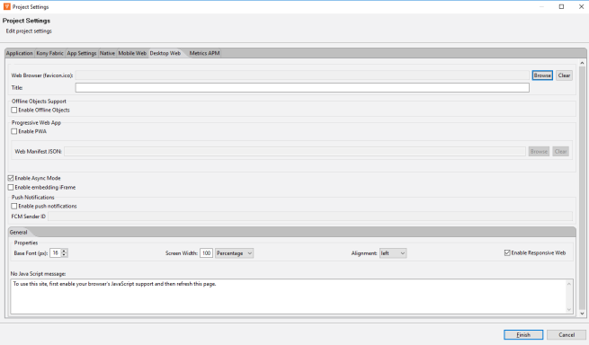 - Select the check box of Enable Responsive Web if you want to enable Responsive Web design for your desktop application.