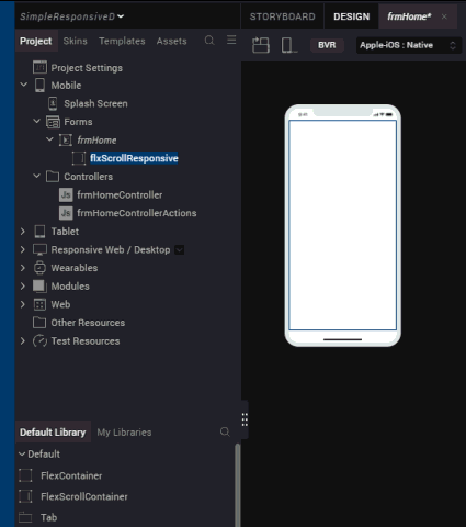 - Drag the FlexContainer widget onto the flxScrollResponsive on the canvas.