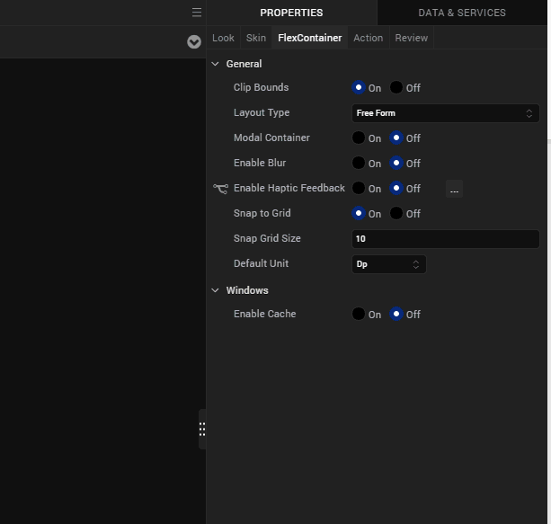 - Add a FlexContainer or FlexScrollContainer based on your requirements.