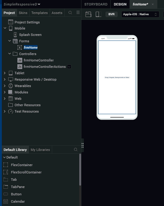 - From the Project explorer, navigate to Responsive Web > Forms, and select frmHome.