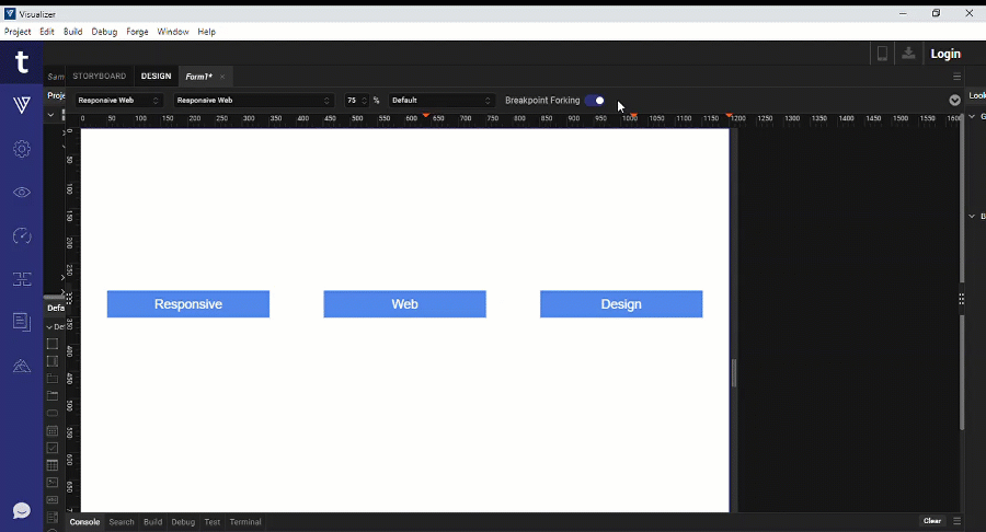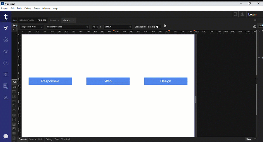 - In your Visualizer Project, on the form that you want to use Responsive Web design, in Visualizer Canvas, select Responsive Web.