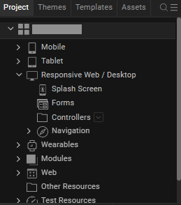 - Click Create. As this is a new project, in the Project Explorer, you will see Responsive Web / Desktop.