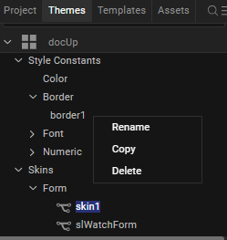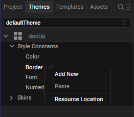 Using the Style Constant for Border feature, you can create a style constant based on the values of the Size, Color, Type, Opacity, and Style of the Border. Using these style constants, developers can instantly update the Skins present in a project. You can create multiple style constants for borders in a project.
