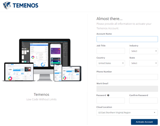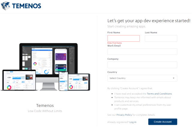 - Go to Temenos Quantum, and then click Start for free from the top menu.