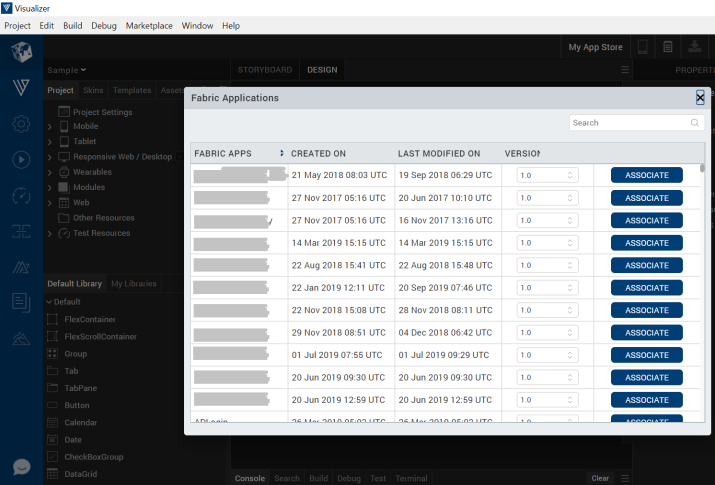 - Click ASSOCIATE against the Fabric Apps that you want to link to Quantum Visualizer.